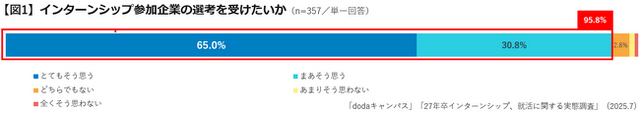 株式会社ベネッセホールディングスとパーソルキャリア株式会社の合弁会社:株式会社ベネッセ i-キャリア(本社:東京都新宿区、代表取締役社長:乾 史憲)が運営する、doda発の新卒オファーサービス「dodaキャンパス」は、「27卒学生(大学3年生・修士1年生)インターンシップ、就活に関する実態調査※1」を実施しましたので、結果をお知らせいたします。尚、当調査のインターンシップには、オープンカンパニーや1dayの仕事体験なども含みます。