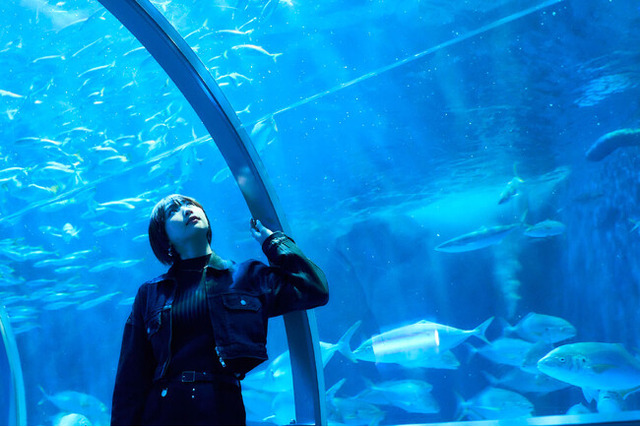 「アクアトンネル」を歩くと周りを大小さまざまな魚が泳ぐのを眺めることができ、まるで海底を散歩している気分になります。