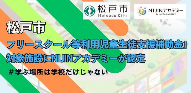 不登校の子どもたちが「安心できる学び場」を見つけ、自分らしいペースで成長できる環境を提供するオルタナティブスクール「NIJINアカデミー」(運営:株式会社NIJIN、本社:東京都渋谷区、代表:星野達郎)は、2025年4月から開始された松戸市フリースクール等利用児童生徒支援補助金の対象フリースクールとして、正式に認定されました。