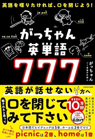 株式会社KADOKAWA(本社:東京都千代田区、取締役 代表執行役社長 CEO:夏野剛)は、2025年7月18日(金)に、音節と発音の本質に迫る新感覚英単語帳『英語を喋りたければ、口を閉じよう! がっちゃん英単語777』(著:ごく普通の外国人 がっちゃん)を刊行します。