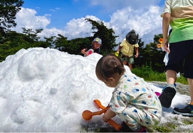 人工雪スキー場ならではの造雪機による雪づくりの技術を活かし、真夏のスキー場山頂に高さ約1mの雪山を造ります。真夏の雪だるまづくりなど、家族や友人同士で、期間中は毎日雪遊びを楽しめます。