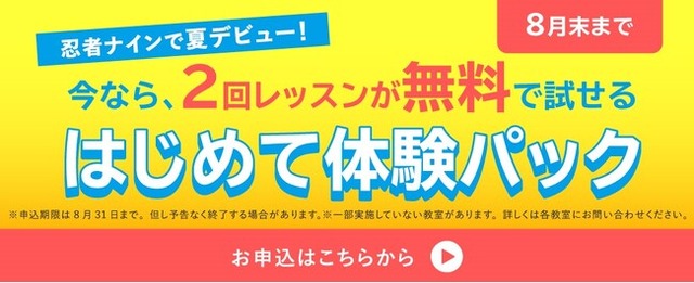 忍者ナインの『はじめて体験パック』2回分の無料体験レッスンで夏の運動習慣をサポート