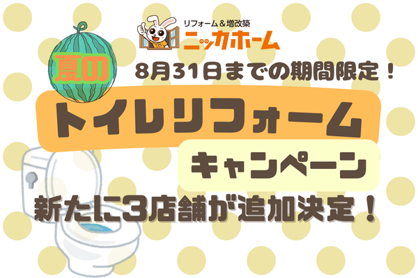 住宅リフォーム事業を手がける ニッカホーム株式会社 (本社:愛知県名古屋市緑区篭山、代表取締役社長:西田裕久、以下 ニッカホーム)は、2025年7月1日(火)から8月31日(土)までの2か月間、関東支社管轄の一部店舗にて「夏のトイレリフォームキャンペーン」を実施しています。