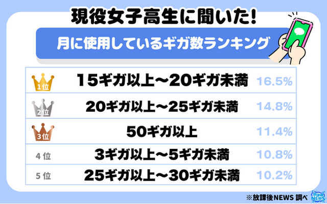 3位に入った「50ギガ以上」と回答した11.4%の女子高生たちからは、