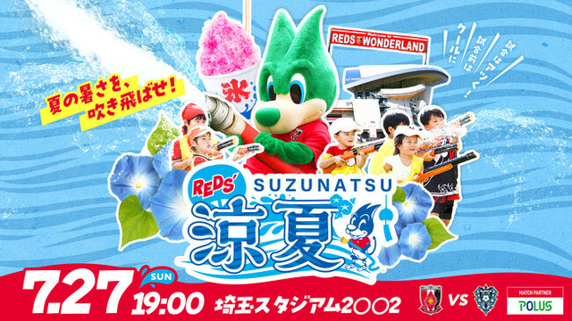 7月27日(日)サッカーJ1浦和レッズは埼玉スタジアム2002で開催するホームゲームにて、VSアビスパ福岡(19:00キックオフ)の試合前に、ご家族やご友人と“涼しく”楽しみ“熱く”盛り上がるスペシャルイベント「REDS’ 涼夏 (すずなつ)」を開催いたします。夏の暑さを吹き飛ばす最大級の高さの特設スライダーや遊具などのアトラクションと、県内老舗店や普段は食べられない全国のご当地アイスが楽しめる涼やかな体験がスタジアムを彩ります。