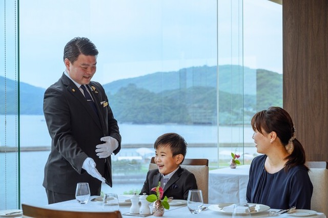 鳥羽国際ホテルのメインダイニング「シーホース」は、1964年の開業以来、国内外のあらゆる賓客をお迎えしてきた伝統と格式を誇りとし、積み重ねた確かなサービスと伊勢志摩の恵みを活かしたお料理で、お客様をお出迎えしてまいりました。そのメインダイニングにて、実際にフレンチ料理を召し上がっていただきながら、カトラリーの使い方やお食事の基本マナーなど、お客様専属のスタッフがお子様にも分かりやすく丁寧に説明いたします。ご家族皆さまで、お子さまのフレンチデビューを見守りながら、心に残る夏休みの思い出として、一生忘れることのない大切なひとときです。
