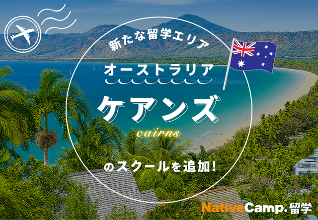 ネイティブスピーカーと回数無制限のオンライン英会話サービス「ネイティブキャンプ英会話」を展開する株式会社ネイティブキャンプ(東京都渋谷区 代表取締役: 谷川国洋)は、2025年7月21日(月)より海外留学エージェントサービス「ネイティブキャンプ留学」に新たな留学エリアとして「オーストラリア・ケアンズ」のスクールを追加しました。