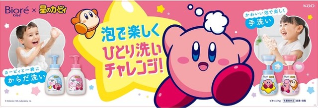 「ビオレu」は幼児期のお子さまたちが楽しく上手にお風呂でのからだ洗いや手洗いができるようになるきっかけを作り、ひとり洗いを応援したいと考えています。そんな想いから、お子さまたちにも人気の「星のカービィ」とのコラボレーションが実現しました。ひとり洗いは、お子さまたちにとっては新しいチャレンジかもしれませんが、いつも前向きに冒険を続ける「星のカービィ」と一緒に、「ビオレu」がサポートします。■オリジナルデザイン商品について