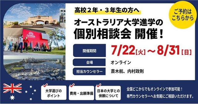 対象者:オーストラリア大学進学を検討中の方々開催日程:2025年7月22日(火)~8月31日(水)