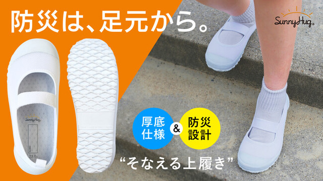 【災害時にそのまま外へ】脱げにくい・滑りにくい・厚底で幅広|防災設計の上履き・先行販売期間:2025年7月19日~8月20日