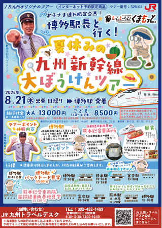 博多駅バックヤード見学や熊本総合車両所での新幹線車両基地見学など、たくさんのぼうけんが待っています!夏休みの思い出作りに、お子さまと一緒にぜひご参加ください!
