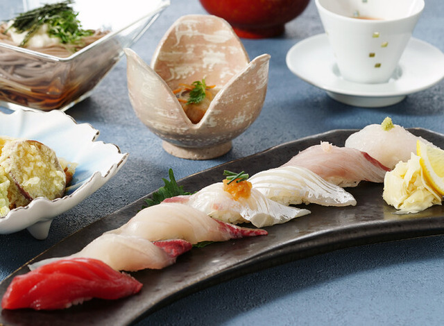 ■8月限定メニュー:「すし富 - 夏の特別膳」鮨七貫 4,000円 (税込) 鮨五貫 3,500円 (税込)【先 付】本日の小鉢