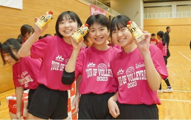 森永乳業と姫路ヴィクトリーナは、2016年より中学生向けのバレーボール教室「森永乳業杯 ツアーオブバレーボール」を開催しています。 竹下 佳江をはじめとする元バレーボール日本代表選手で結成したユニット“ヴィクトリーナドリームス” が講師となり、これまでに延べ14,000人以上の中学生に技術指導を行ってまいりました。
