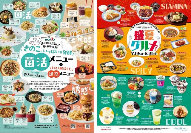 ランドマークプラザでは、昨年大好評いただいた「菌活」メニューがパワーアップして登場いたします。きのこや発酵食材などの身体によい菌を積極的に食事に取り入れ、身体の中から健康やきれいを目指す「菌活メニュー」に加え、チートデイに食べたい、夏の暑さも吹き飛ばすスタミナたっぷりの「誘惑のメニュー」をご提供いたします。