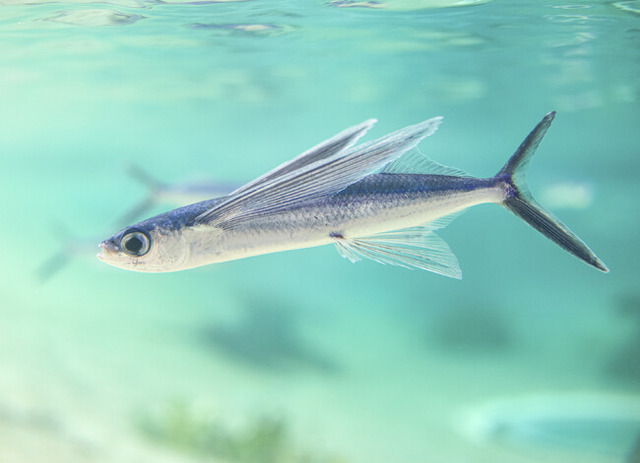 トビウオは初夏から初秋にかけて南房総近海に回遊してくることから、夏の魚として親しまれています。エサの消化が早く、こまめに食べなければ弱ってしまうため、飼育するためには安定した給餌を行うことが重要です。今回展示を開始した個体は鴨川の定置網で採集したもので、飼育員が日に何度もエサを与え、飼育環境に慣らすことで展示が可能となりました。トロピカルアイランド内「エメラルドの入江」で、特徴的な胸ビレを広げて泳ぐ「ツクシトビウオ」や「ホソトビウオ」を見ることができます。