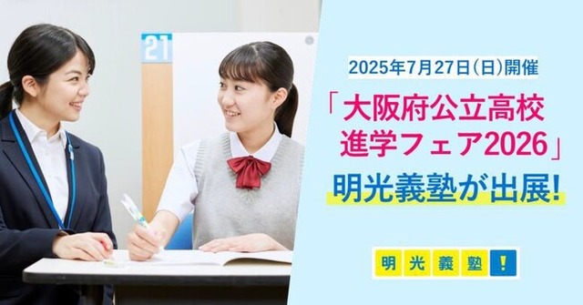 個別指導の「明光義塾」を全国展開する株式会社明光ネットワークジャパン(本社:東京都新宿区、代表取締役社長:岡本 光太郎)は、2025年7月27日(日)にインテックス大阪で開催される、大阪府教育委員会主催の「大阪府公立高校進学フェア2026」に出展いたします。