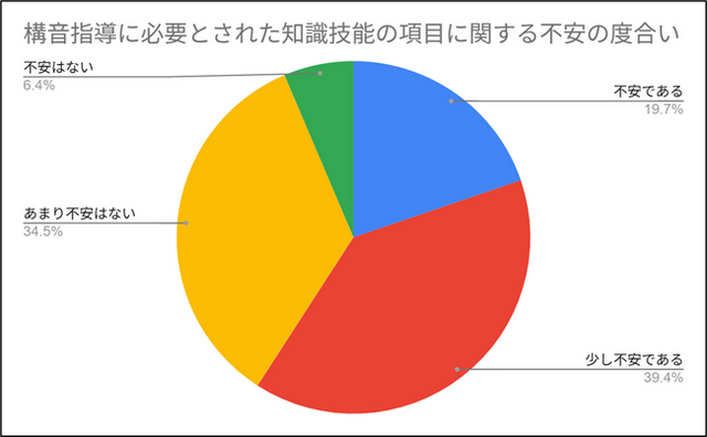 今回、新潟県中越地区のことばの教室で構音指導を行う教員21名に対し現状調査を行ったところ、過半数の教員が業務上の不安を持つことが明らかになりました。