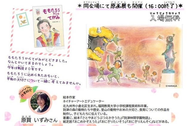 直方市立図書館では、夏休み特別企画として、絵本『ももたろうからのてがみ』の読み聞かせと作者による講話を通じて、子どもたちとともに「平和」について考えるおはなし会を開催します。