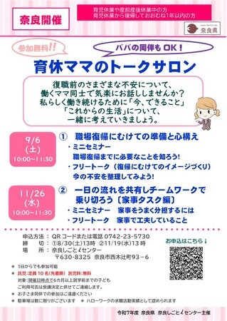 育児休業から円滑な職場復帰ができるよう、復職前のさまざまな不安について、働くママ同士で気楽にお話ししませんか?