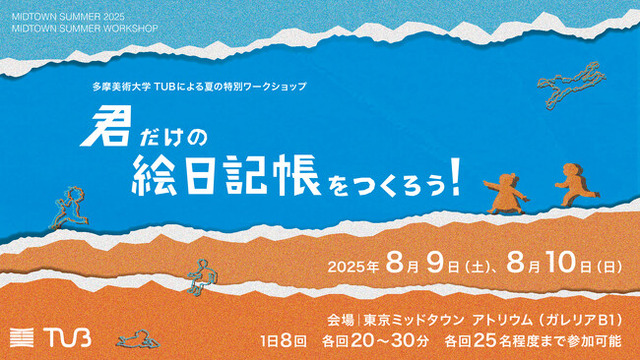 学校法人多摩美術大学(所在地:東京都世田谷区、理事長:青柳正規、多摩美術大学学長:内藤廣)は、東京ミッドタウン アトリウムにて2025年8月9日(土)と10日(日)の2日間、子どもを対象としたワークショップイベント「君だけの絵日記帳をつくろう!」を開催いたします。
