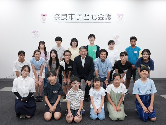 本市では、子どもにやさしいまちづくりについて子どもたちだけで話し合い、自由に自分の意見を言える場所として開催される「奈良市子ども会議」(全5回)が、7月25日(金)より開始し、初日には仲川市長が挨拶を行いました。