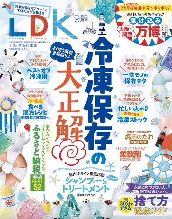 9月号は「冷凍保存の大正解」を総力特集! 気になる食費を抑えたいけど、おいしくラクにごはんを作りたい。そんなあなたに一生役立つ冷凍テクを伝授! 賢く冷凍庫を活用して、おいしい食卓を守りましょう。ほかにも「ふるさと納税BEST52」や「はかどる捨て方ガイド」など、生活が楽しくなる情報が満載です。「使う人目線」の検証で見つけた「本当にイイもの」で、心地よい暮らしを実現しましょう。