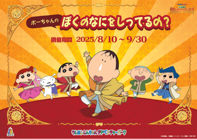 兵庫県淡路島にある「ニジゲンノモリ アニメ淡路島公園」の人気アトラクション「クレヨンしんちゃんアドベンチャーパーク」では、今年の夏大注目の「映画クレヨンしんちゃん 超華麗!灼熱のカスカベダンサーズ」公開を記念し、映画連動企画「ボーちゃんクイズラリー ぼくのなにをしってるの?」を8月10日(日)~9月30日(火)にて開催いたします。