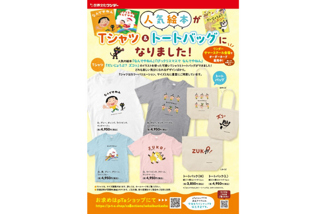 世界文化ワンダーグループは、人気絵本『なんでやねん』『びっクリスマスで なんでやねん』『だいじょうぶ? ズコッ』のイラストを使ったTシャツとトートバッグを7月25日(金)より発売しました。