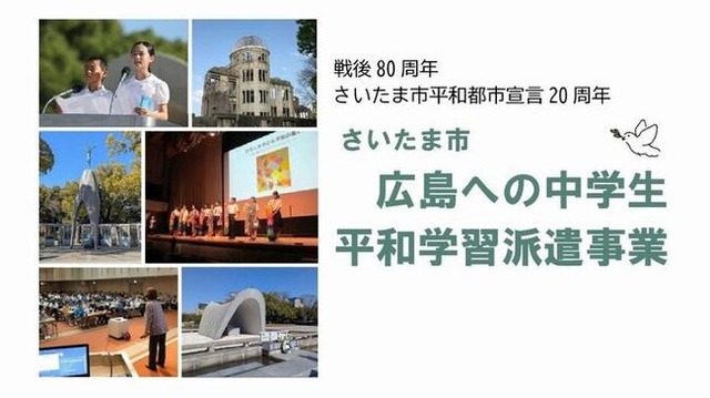 その一環として、戦後80周年・さいたま市平和都市宣言20周年の節目に、市内在住の中学生10名を被爆地広島へ派遣し、被爆の実相に触れて戦争や原爆被害を実感するとともに、平和記念式典への参列など現地でしかできない体験をしながら、平和の尊さや大切さを考えていきます。