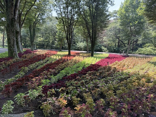 国営武蔵丘陵森林公園の公園・庭園樹園(中央口より徒歩約15分)では、「コリウス」と「ヒマワリ」が見頃を迎えています。青空と緑の下に広がる色彩豊かな情景をお楽しみください。