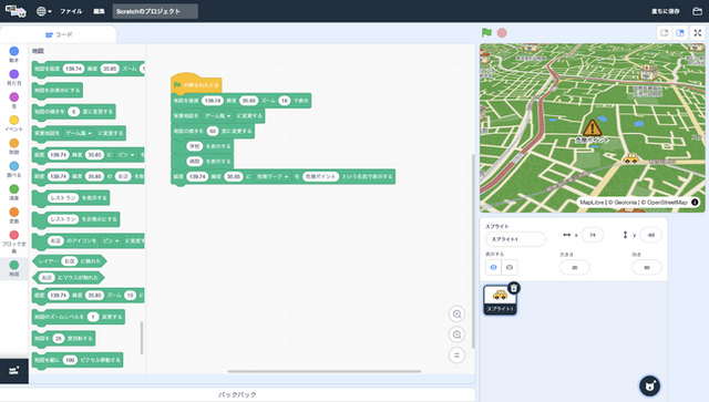 世界的に有名なビジュアルプログラミング言語であるScratchをベースに開発しているため、プログラミングが初めてのお子さんでも、馴染みのあるインターフェースで地図やデータを使った学習にスムーズに入ることができます。まるでゲームで遊ぶかのように、楽しみながら論理的思考力と問題解決能力を育むことが可能です。
