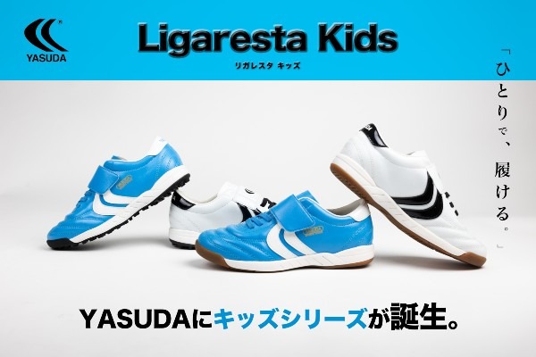 そして今回、さらに下の世代、まさにサッカーを始めるお子さまたちから、靴紐の扱いに不慣れなキッズプレイヤーまで、幅広いニーズに応えるYASUDA初のキッズ向けシューズ「Ligaresta Kids」シリーズを発売いたします。