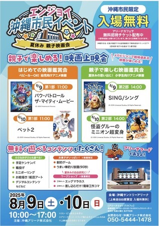夏休みのイベントとして子ども達や親子が楽しめる機会を提供し、沖縄サントリーアリーナを身近に感じる機会を創出する。また、家族で映画やゲームを楽しみながら、子供の社会性、表現力の向上、親子のコミュニケーション促進を深められる貴重な機会を提供し、文化の振興、地域の活性化のきっかけとするために開催いたします。