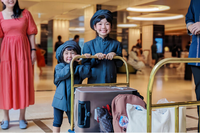 - キッズサイズの制服に身をつつみ、ロビーのお客さまのお迎え&お見送りやお荷物預かり、お部屋案内体験などで、ホテリエのお仕事を学びます。笑顔とおもてなしの大切さを感じていただけるイベントです