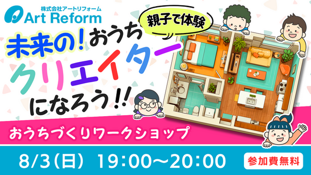 - イベント名:親子で体験!未来のおうちクリエイターになろう!(株式会社アートリフォーム)- 日時:2025年8月3日(日)19:00~20:00