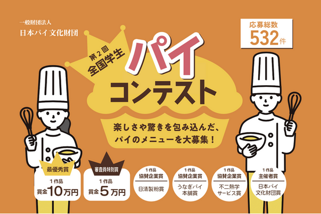 全国学生パイコンテストは、食育活動の一環として若い世代がパイに親しむ機会となることを目指し、全国の学生を対象に昨年度に初めて企画しました。2025年5月1日(木)から2025年6月30日(月)まで、「記念日のパイ」をテーマにレシピ募集を行い、全国から532件の応募をいただきました。