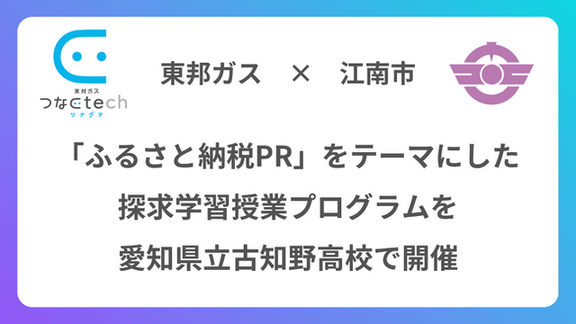 東邦ガス株式会社は、2025年7月16日(水)、江南市および愛知県立古知野高等学校と連携し、「ふるさと納税PR」をテーマとした高校生向けの授業プログラムを実施しました。