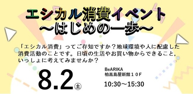 柏市消費生活センターでは、SDGsやエコにもつながる、環境や人、社会を思う消費行動「エシカル消費」に関するイベント「エシカル消費~はじめの一歩~」を開催します。ワークショップや講座、高校生によるフェアトレードコーヒーの販売・レモネードスタンド募金、消費者市民団体によるリサイクル品のフリーマーケットなどを実施します。