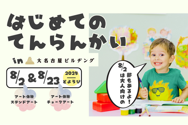 「はじめてのてんらんかい」での展示体験に向けて、8月2日(土)、8月23日(土)にワークショップを実施します。制作した作品はその場で撮影・データ化し、大名古屋ビルヂングGALLERYにてデジタル展示を行います。参加者には案内状(はがきサイズDM)をお渡しするので、家族や知人・友人を「はじめてのてんらんかい」に招待することが可能です。