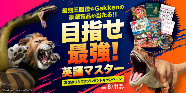 株式会社 学研ホールディングス(東京・品川/代表取締役社長:宮原博昭)のグループ会社で、オンライン英会話サービス「Kimini英会話」を提供している株式会社 Glats(東京・品川/代表取締役社長:杉原聡)は、2025年7月29日(火)より、アニメ「最強王図鑑」とのコラボレーションキャンペーンを実施中です。有料会員はもちろん、無料体験中の方も応募可能! 抽選で「最強王図鑑」や限定ノベルティ、Gakkenの英語学習書籍など豪華賞品をプレゼントいたします。