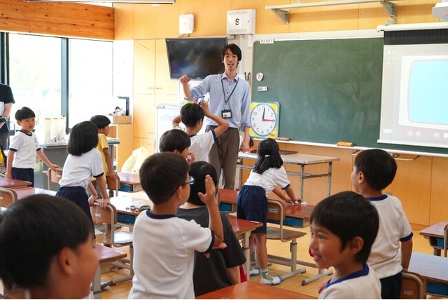 学校の教室で子どもたちと関わる奥津作業療法士