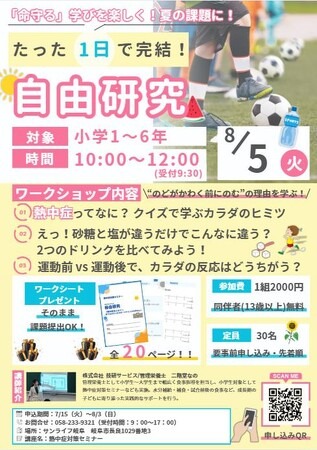 2025年8月5日(火)サンライフ岐阜では、猛暑が続く岐阜の子どもの「命を守る力」を育むため、夏休みの自由研究課題に最適な 「熱中症対策をテーマにした自由研究ワークショップ」を、岐阜市内で初開催します。