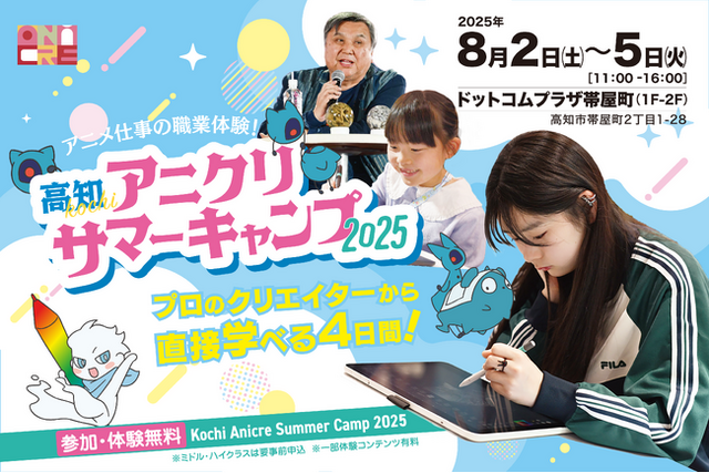 高知アニメクリエイター聖地プロジェクト実行委員会は、2025年8月2日(土)から8月5日(火)までの4日間、高知市帯屋町のドットコムプラザにて「高知アニクリサマーキャンプ2025」を開催します。
