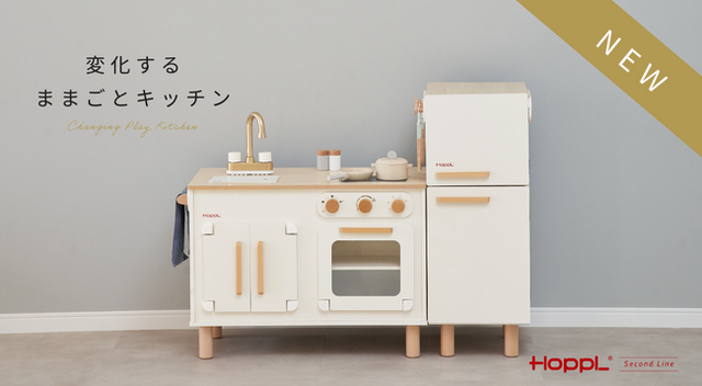 「子育てにデザインをプラスする」をコンセプトにベビーキッズブランド「HOPPL(ホップル)」を展開する株式会社Noz(所在地:兵庫県宝塚市、代表取締役社長:野澤 重幸 のざわ しげゆき)は、新商品「変化するままごとキッチン」を8月1日(金)に発売いたします。公式オンラインショップでは、発売を記念した限定特典をご用意しています。「変化するままごとキッチン」は、HOPPLの新しい製品ライン「セカンドライン」の第一弾となる新商品です。