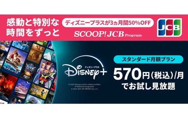 株式会社ジェーシービー(本社:東京都港区、代表取締役会長兼執行役員社長:二重 孝好、以下:JCB)は、2025年8月1日(金)からディズニー公式動画配信サービス「ディズニープラス」のスタンダード月額プランが3ヵ月間50%オフとなるキャンペーンを実施します。
