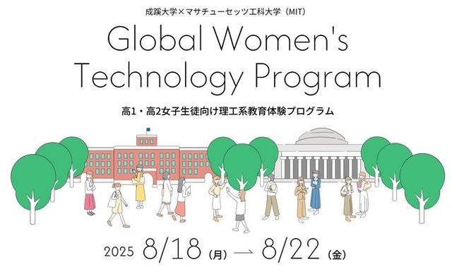 成蹊大学(東京都武蔵野市、学長:森雄一)では、米国・マサチューセッツ工科大学Women's Technology Program(MIT-WTP)と共同で、日本の女子高校生1、2年生を対象とした理工系教育プログラム「Global Women's Technology Program(以下、WTP Global)」を2025年8月18日(月)~22日(金)の5日間、本学11号館にて開催します。