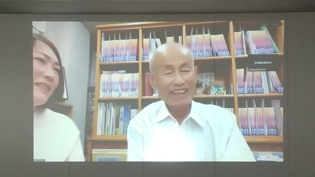 ▲広島からオンラインで話をしてくれた箕牧さん
