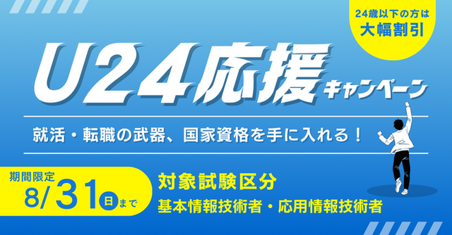 情報処理技術者試験、公認会計士、公務員、日商簿記検定、CompTIAなどの資格取得に向けた教育サービスを展開しているTAC株式会社(東京都千代田区、代表取締役社長:多田 敏男)は、24歳以下の方を対象とした「U24応援キャンペーン」を実施中です。人気の基本情報技術者「本科生プラス」「本科生」、応用情報技術者「本科生プラス/A/B」「本科生/A/B」「上級コース/A/B」を大幅割引でお申し込みできます。割引キャンペーンはいずれも2025年8月31日(日)までの期間限定です。