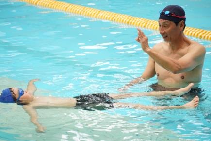 ロサンゼルス五輪・水球日本代表の若吉教授は、水難事故にあった時に最も重要な「体力を消耗せず(慌てず)、安全な場所移動し、浮いて待つ(助けを待つ)」を習得するために、国民皆泳に導く子どもへの水泳授業が重要と考え安全水泳プログラム「大阪“大の字”泳法」の開発・普及活動を行っています。この泳法では、最初に水難事故から身を守る基本姿勢“大の字浮き”を習得します。とっさに“大の字浮き”をするには慣れや訓練が必要です。