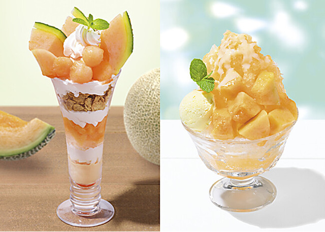 旬のフルーツを使ったデザートをお届けしている「旬のフルーツ直行便」シリーズに、北海道産赤肉メロンを使ったパフェと、かき氷が今年も登場します。